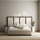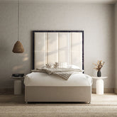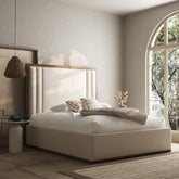 The Harper Bed is a bold yet refined centerpiece designed for contemporary interiors. Featuring a sleek upholstered frame, it pairs effortlessly with the striking contrast of vertical acoustic slatted wood panels. The oversized headboard extends beyond the frame for a dramatic, architectural presence, blending...- from £799.99