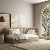 Transform your bedroom with the Ascot Cloud Curve Bouclé Bed, a modern designer bed frame that combines sculptural elegance with everyday comfort. Upholstered in a luxurious textured bouclé fabric, this curved upholstered bed is the ultimate statement piece for contemporary interiors. The low-profile frame...- from £849.99