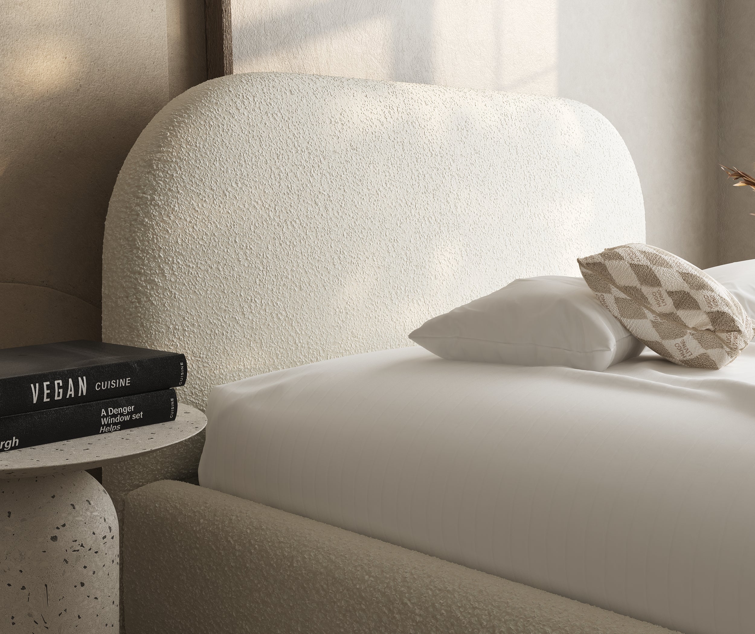 Bring soft sophistication to your bedroom with the Aintree Curve Bed, a modern statement piece defined by its gently rounded silhouette and inviting design. Upholstered in a textured boucle-inspired and variety of fabric options, this bed blends contemporary minimalism with cozy, cloud-like comfort.